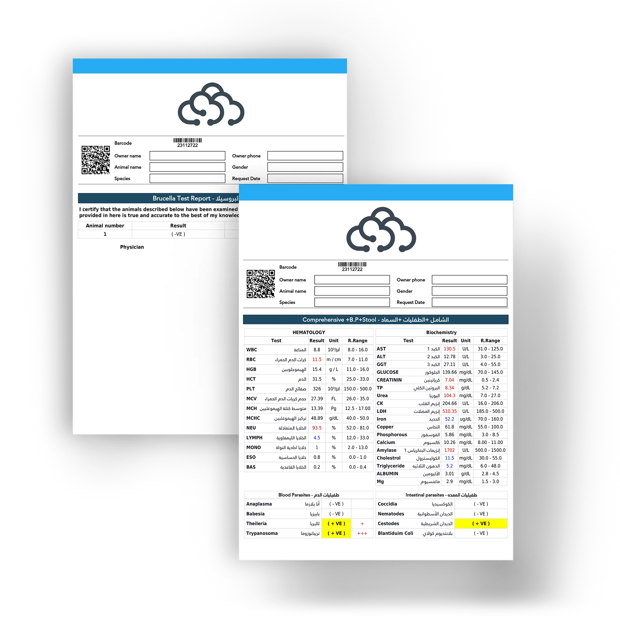 يوفر نظام إدارة المختبرات والعيادات البيطرية حلاً شاملاً لإدارة كافة الجوانب الطبية والمالية للمختبر والعيادة. يشمل النظام إمكانية إضافة ملفات العملاء وتسجيل بيانات الحيوانات، إنشاء الفواتير، تسجيل خدمات العيادة، وطباعة الإيصالات. كما يتيح متابعة عينات كل حيوان وإدخال النتائج يدويًا أو آليًا عبر ربط الأجهزة الطبية، بالإضافة إلى طباعة النتائج وإرسالها للعملاء.